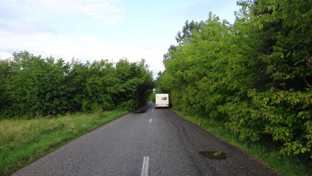 si ne continuam drumul pe o ploaie sanatoasa, trecand cu emoti printr-o portiune foarte ingusta (aproape 2, 2m) aflata in lucru, inainte de baraj!
