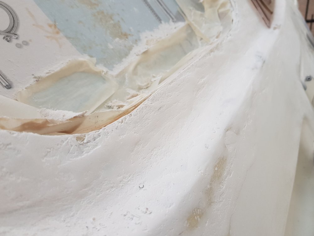 Am curățat toată zona cu geamurile și am dat o mână de răsina cu plasă de fibră (nu apare în poze răsina).