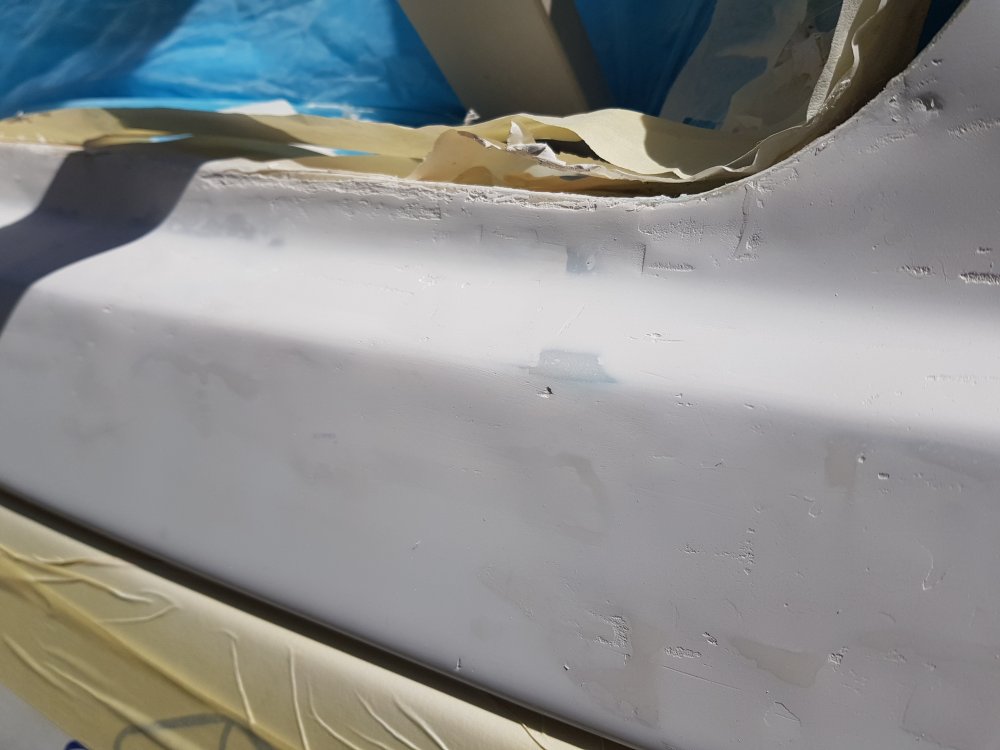 Părerea mea este că si pe exterior să faci ceva reparație  serioasă, (fibră sau lipitură) și peste finisezi cu chit de reparație cu fibră.  Nu interesează pe nimeni dacă sunt ceva locuri unde ii refăcută vopseaua, dar în schimb îi mult mai corectă/sigură reparația.