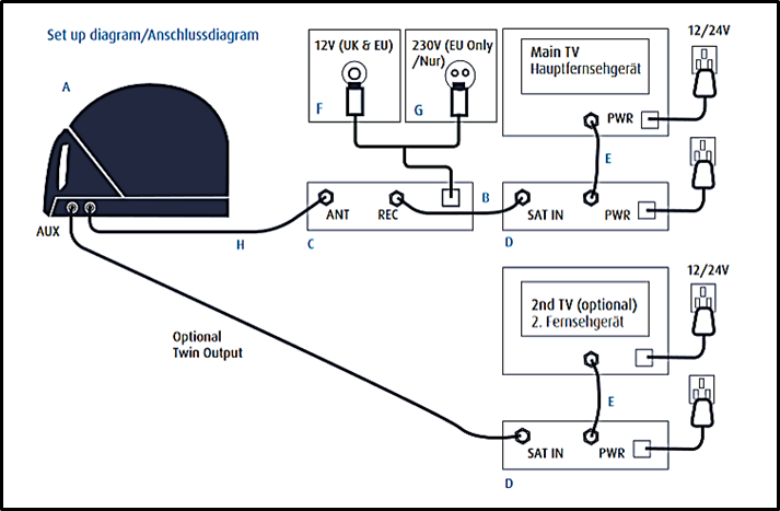 The antenna will now begin to search and the SAT SCAN lights on the control box will begin cycling to confirm this. This process can take up to 10 minutes, however in most cases will be considerably less. (de cele mai multe ori dureaza foarte putin!)