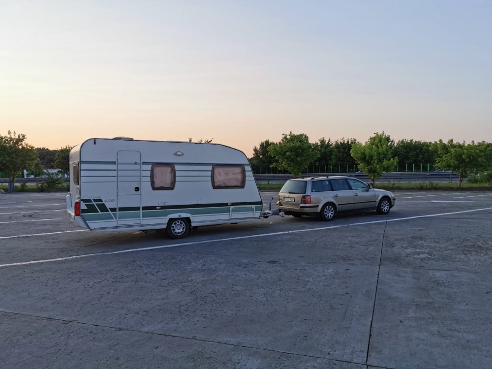 Radu Mihail Georgescu 25 Semnalează Publicat 3 Iulie, 2021 (modificat) Castelul nostru departe de casa. Am clocit ceva achizitia, auspiciile s-au intrunit abia in acest an, se pare cu folos. Am optat pentru o rulota medie ca dimensiuni insa echilibrata dpdv dotari si cu un an de fabricatie decent (2005). Adusa direct din Olanda in iunie 2021, "castelul" beneficiaza de un cort complet, unul tip marchiza, mover, trumatic/trumavent, boiler apa calda electric truma. Interiorul curat, fara uzuri vizibile, este in culori clasice, armonioase si un design inca modern, as zice mai prietenos decât cele care incorporeaza in prezent fronturi lucioase si alte brizbrizuri. Cu 900kg masa proprie, 1300 mma, 470cm lungime utila si inca 120cm proțapul (echipat cu cupla antibalans), rolota face un echipaj bun cu masina familiei, un longeviv si trainic Volkswagen Passat Break din 2004, motorizat cu un propulsor de 2.0 litri care dezvolta 136 cp si o cutie cu 6 trepte de viteze, ergonomica in exploatare, masina intretinuta anual si cu reparatiile la zi, ajunsa la 325.000 km. Dupa obtinerea numerelor provizorii am inaugurat o pe 30.06.2021, fiind in prezent angrenati in prima noastra experienta de on camping ca rulotisti, pe litoral, impresiile fiind excelente. Dupa intoarcere, intentionez sa trec iluminatul pe leduri, sa il conectez, inclusiv pompa de apa, in comutatie, pe baterie, sa ii montez un panou fotovoltaic, porturi de incarcare usb si clasice de bricheta si sa inlocuiesc bateria actuala cu una de o capacitate mai mare, pentru autonomie ridicata. Mai trebuie revizionat un pic frigiderul, dand semne de ineficienta. Sa avem drumuri bune, campinguri civilizate si peisaje faine! Modificat 3 Iulie, 2021 de Radu Mihail Georgescu 8 Distribuie această postare Link către postare Distribuie pe alte siteuri