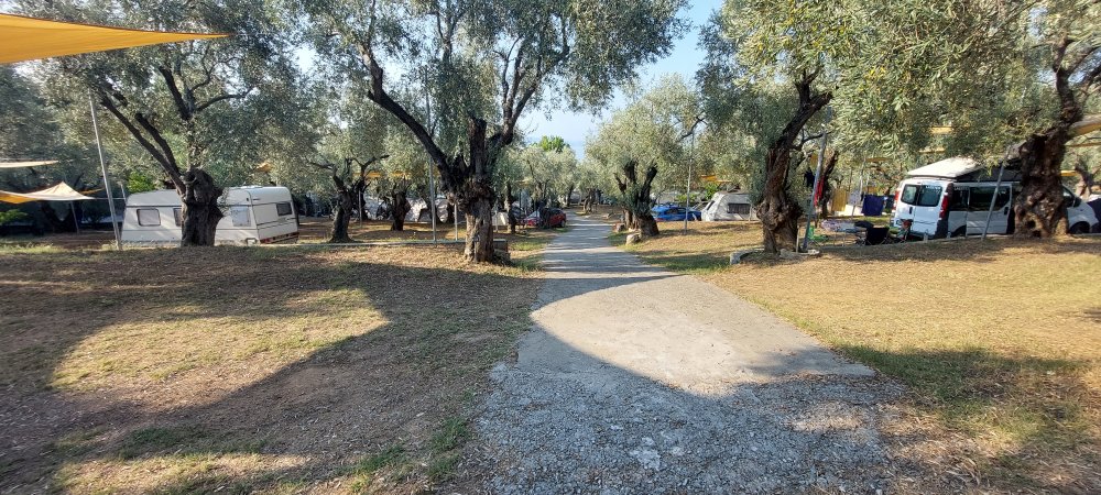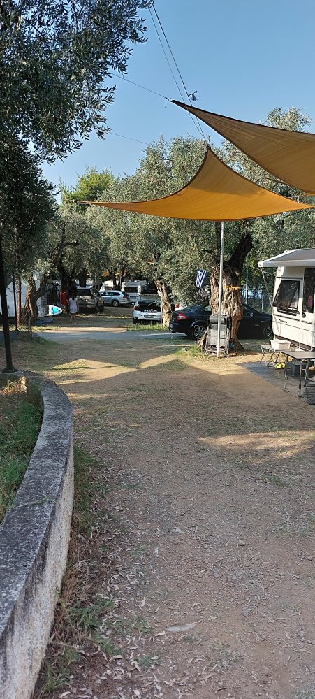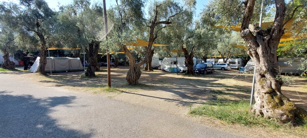 Este umbră în camping de la măslini dar si de la umbrarere montate suplimentar. Am simțit totuși căldura foarte mare pe timpul zilei iar  în ultima noapte am dormit greu din această cauză. Nu adia deloc vântul.