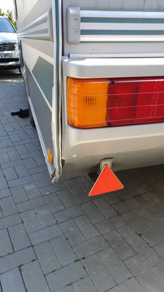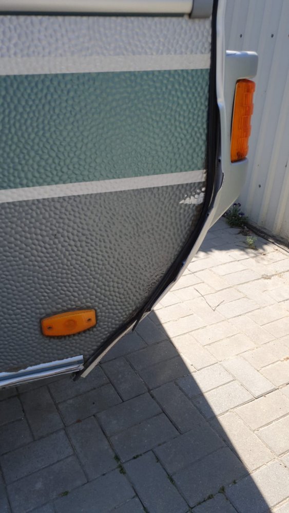 Din pricina grabei și a spațiului îngust din curte, am atins din greșeală șina rulotei in partea stanga spate.