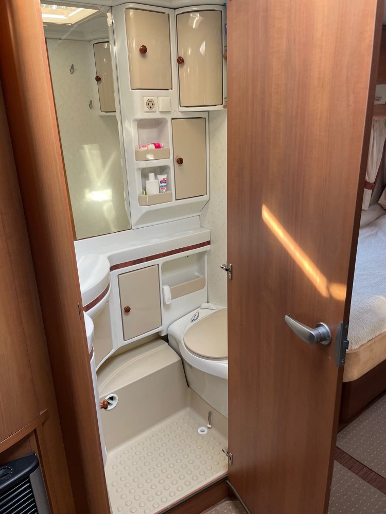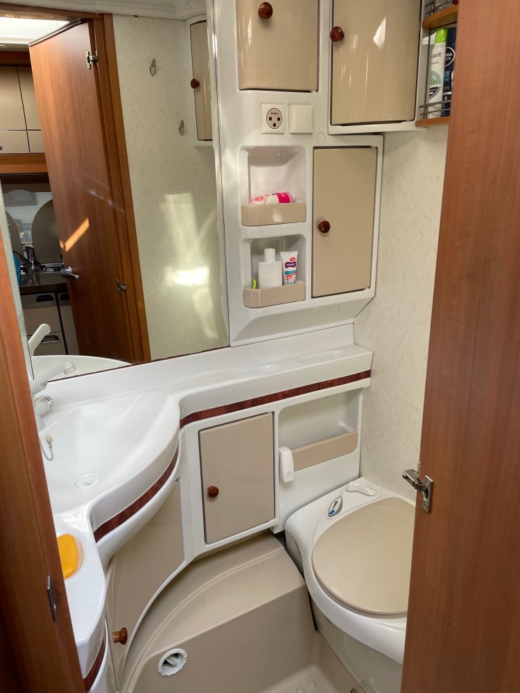 Baie cu toaleta Thetford cu golire exterioara si cadita de dus;