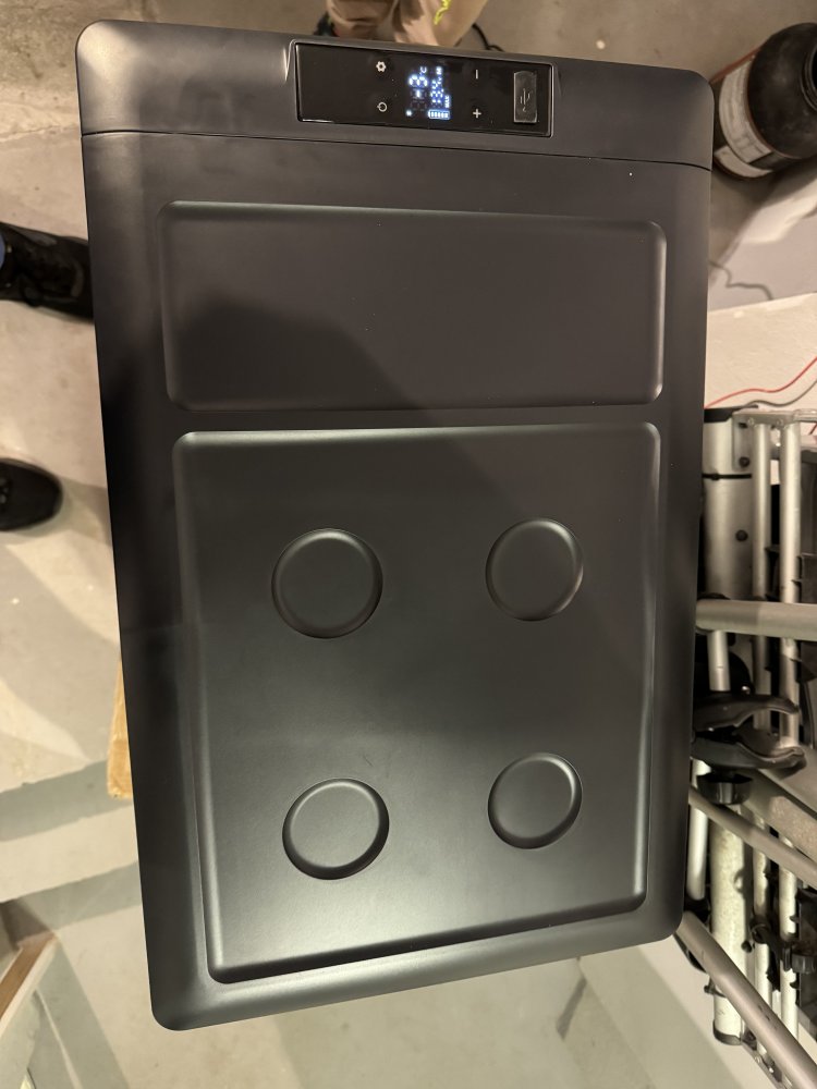 frigider nou cu compresor, dedicat rulotelor sau barcilor. M-am invartit mult sa gasesc un frigider de 220v si sa il trnsform la 12v, insa nu am reusit sa gasesc niciunul la dimensiunea celui vechi (74 cm inaltime). Toate din comert au 80 cm . 2 ani m-am tot codit din cauza pretului, greu de acceptat sa dau mai mult pe cel din rulota decat pe frigiderul din casa