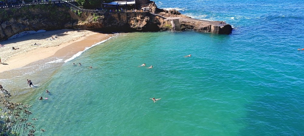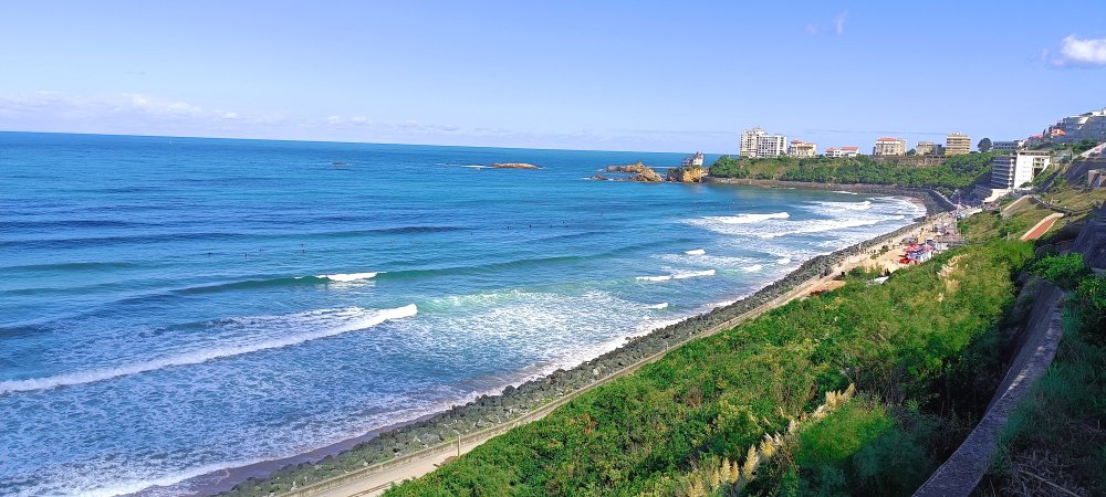 Biarritz, o stațiune balneară elegantă de pe coasta bască din sud-vestul Franței, a devenit celebră după ce reprezentanții aristocrației europene au descoperit satul de pescari ca destinație de vacanță în secolul al XIX-lea. Orașul cu plajele sale lungi de nisip este, de asemenea, popular printre surferi. Există numeroase școli de surf. Punctul de reper al orașului Biarritz, Rocher de la Vierge, este un recif stâncos pe care se află o statuie a Fecioarei Maria. La recif se poate ajunge pe o pasarelă, care oferă o vedere panoramică a Golfului Biscaya.
