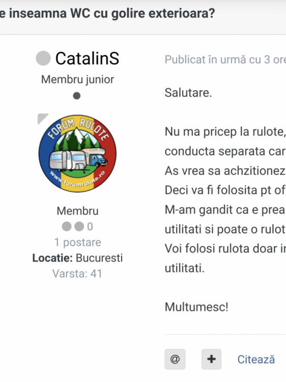 7 postări în acest subiect de discuţie despre Ce inseamna WC cu golire exterioara?