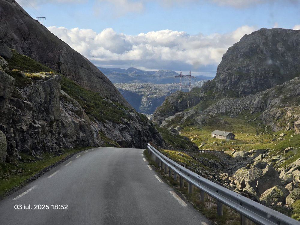 Andrey 282 Semnalează Publicat 15 Iulie De aici am plecat către Drumul Trolilor (Trollstingen), unul dintre obiectivele de top ale Norvegiei. Este inchis destul de multa vreme duntr-un an. Am avut noroc, se deschisese chiar in ziua in care am fost noi. Aglomerația a fost pe măsură. Am înnoptat chiar înainte de a intra pe traseul propriu zis (intr-o parcare amenajată). Drumul Trolilor are o lungime de câțiva km si are 11 ace de păr. Desigur că pana aici peisajele sunt, de asemenea, de poveste, însă cele de aici sunt la superlativ. Ziua 13, 12 iulie, sâmbătă Am intrat efectiv pe drum. Las pozele sa vorbească. 1 Distribuie această postare Link către postare Distribuie pe alte siteuri