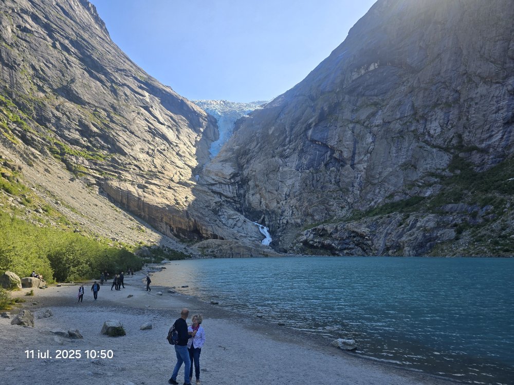 Andrey 275 Semnalează Publicat 16 Octombrie Ok, să mergem mai departe! Briksdal este o limbă de gheață desprinsă din uriașul Jostedalsbreen – cel mai mare ghețar continental al Europei. Briksdal se revarsă ca o mare înghețată între pereți de granit, oprindu-se brusc într-un lac de un turcoaz ireal, născut din topirea sa lentă. Drumul spre ghețar pornește din satul Olden (unde am înnoptat şi noi), o așezare mică și liniștită de pe malul fiordului, și urmează serpentinele văii până la Briksdalbre Fjellstove, poarta de intrare în lumea albă a gheții. De aici, călătorul are de parcurs aproape trei kilometri pe jos – o plimbare ușoară, presărată cu cascade, mușchi verde și priveliști de poveste. Cei mai puțin dornici de efort pot urca într-un mic vehicul electric, botezat cu umor „troll car”, care urmează aceeași potecă. 1 Distribuie această postare Link către postare Distribuie pe alte siteuri