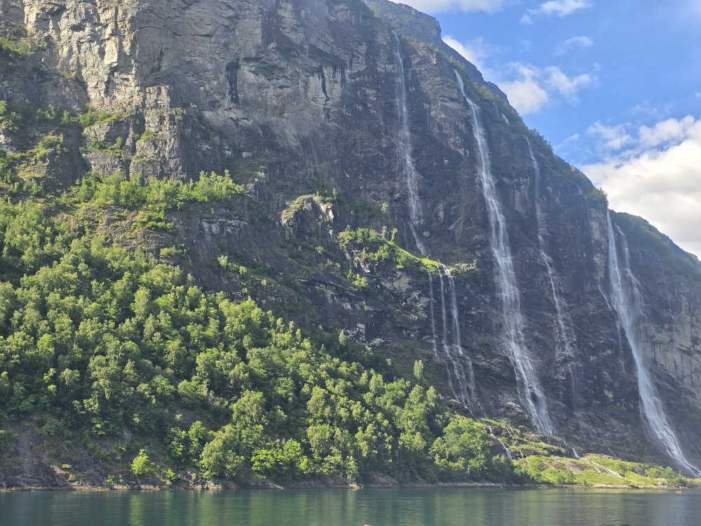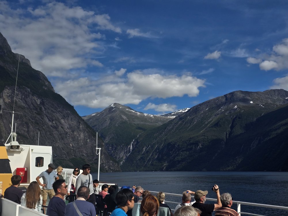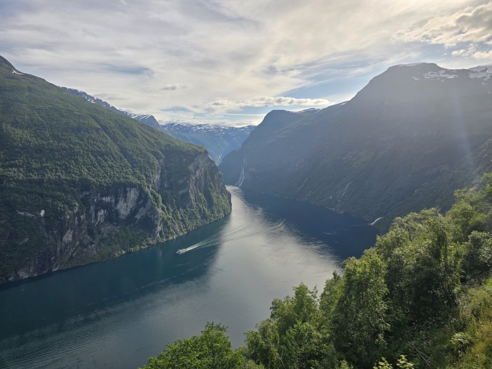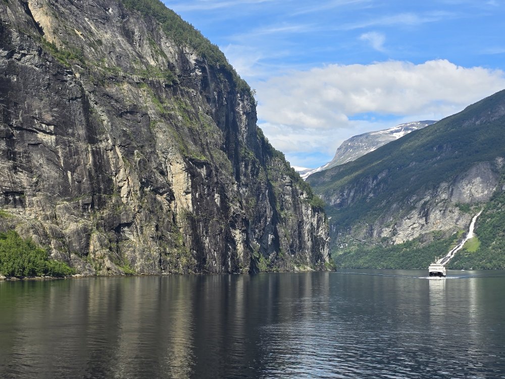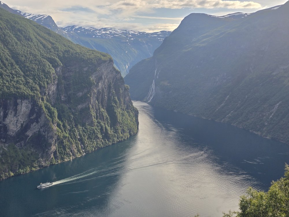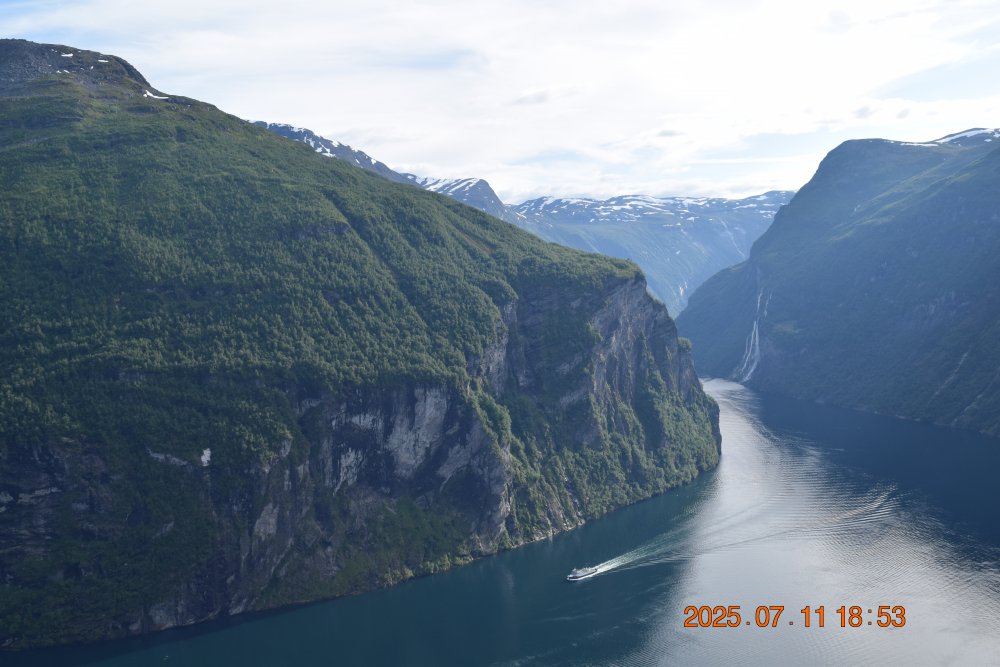 Andrey 275 Semnalează Publicat 17 Octombrie Geiranger este unul dintre cele mai spectaculoase fiorduri ale țării, inclus în patrimoniul mondial UNESCO din 2005. Are aproximativ 15 kilometri lungime și este o ramură a marelui Storfjord. Este înconjurat de munți abrupți care depășesc 1.000 de metri înălțime. Din versanți se prăvălesc numeroase cascade, dintre care cele mai cunoscute sunt: De Syv Søstrene (Șapte Surori) – șapte șuvoaie paralele care coboară direct în fiord; Friaren (Logodnicul); Brudesløret (Voalul Miresei) – o cădere de apă mai subțire, care creează o perdea fină de vapori. Călătoria cu ferry pe acest fiord a fost destul de scumpă, cred că am plătit vreo 200 euro, însă a meritat. Peisajele mi-au adus aminte de de cele ale noastre, de la Cazanele Dunării. În una din poze am încercat să surprind o formațiune stâncoasă antropomorfă care iarăși mi-a amintit de Cazane, și anume de chipul lui Decebal. 3 Distribuie această postare Link către postare Distribuie pe alte siteuri