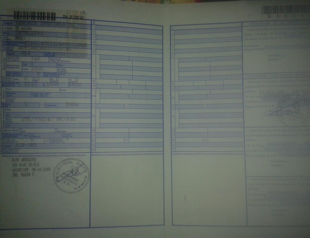 Gata! Rulota postata de mine mai sus cu poze se afla in curtea mea, pret 8000 RON. Am adus-o de la Calarasi(unde statea de doi ani), am mers cu 80 la ora dar am ajuns (cu greu)si la suta. E foarte OK asa goala, o sa vad cum e mai plina la prima "iesiala".