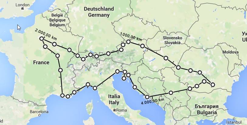 Am un traseu ( cel prezentat mai sus) de vreo 6.000 km ( dus-intors ) ce cuprinde vreo 12 tari.