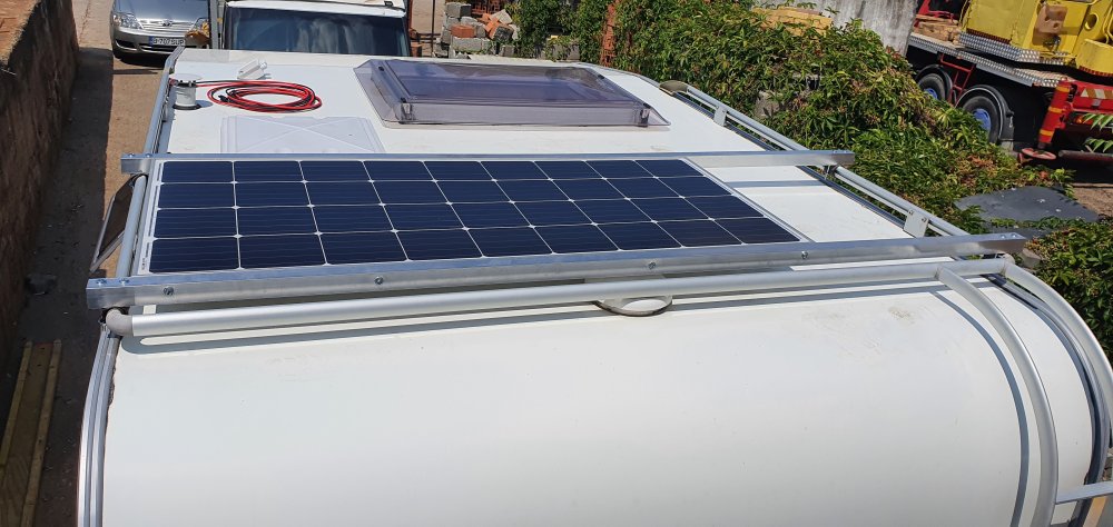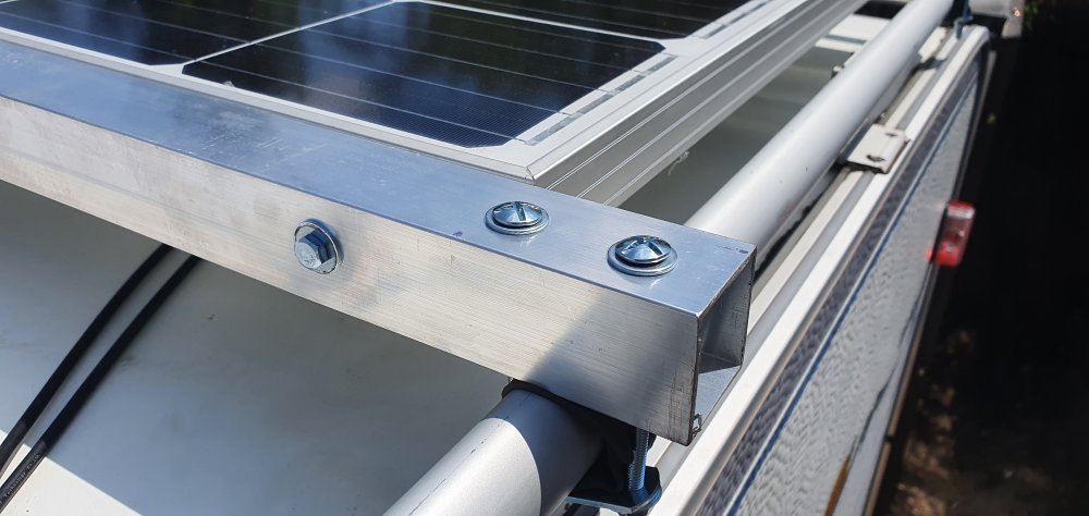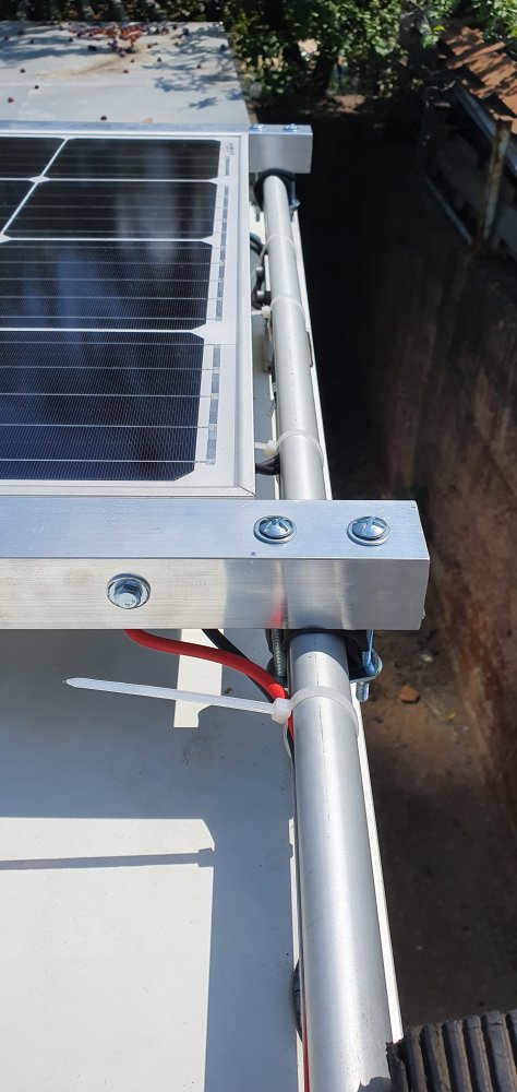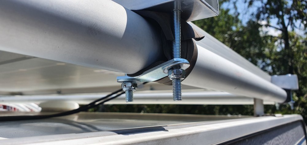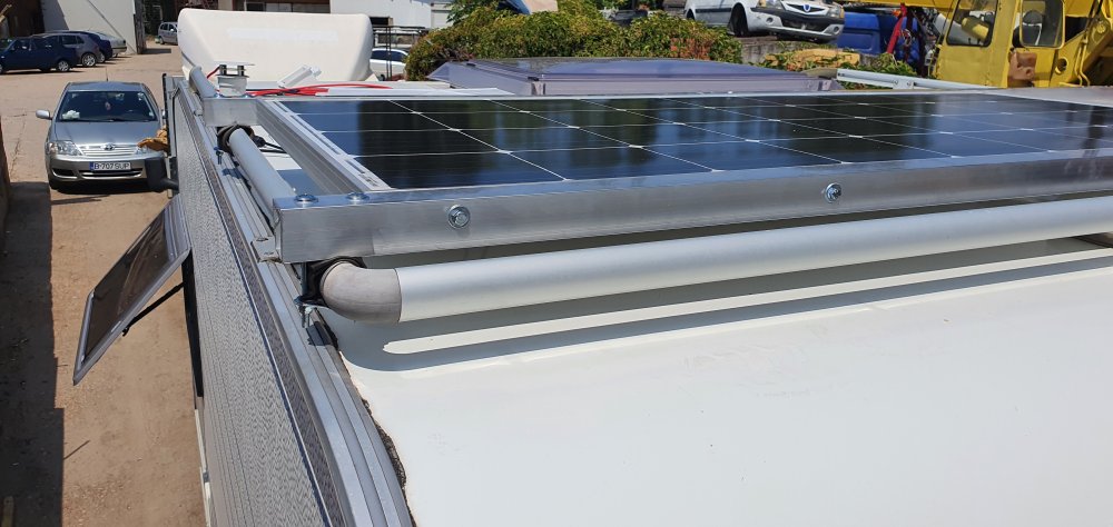 Astazi mi-am montat un panou solar si m-am gandit ca poate fi interesant pentru cei care au bare longitudinale pe rulota si nu vor sa lipeasca panoul pe acoperisul acesteia.