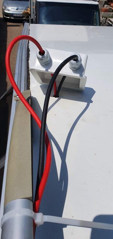 Am cumparat de la un magazin auto o priza pe 13 pini (identica cu cea care e pe masina) si am facut urmatoarele conexiuni: 1. iesire panou fotovoltaic (mufe rapide) - intrare regulator (care are o rigleta cu suruburi), cablu de 7-8 m lungime;   2. iesire regulator - priza 13 pini cablu 1 m lungime. Am folosit cablu in invelis de cauciuc de 2 x 1, 5, rezista la soare sau frig.     La priza auto am legat cele doua fire: plusul pe pinul 9 si minusul pe pinul 13.   Este valabil pe multe rulote, inclusiv Weinsberg ca si a mea.     Se poate si masura:  se pune pe priza rulotei de 13 pini aparatul de masura intre pinii 9 si 13 sau 10 si 12 si unde sunt aproximativ 12 V acolo e legat acumulatorul. Cand am timp, mai pe la sfarsitul saptamanii, fac si niste poze.  Avantajul cu priza pe 13 pini e ca nu mai dai gauri prin rulota, poti conecta unul sau mai multe panouri, redresor auto pentru incarcare etc.