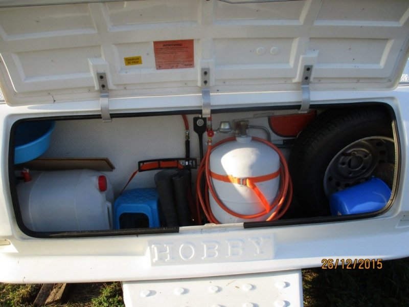 Dupa mai multe cautari pe site-urile de profil si vizionari,  am ajuns la Targu Secuiesc unde sunt cateva parcuri de rulote si uite-asa mi s-a pus pata pe rulota asta...Este vorba de Hobby 450 De luxe, an de fapricatie 1999, masa proprie 1050, mma 1350, cu dotarile standard pe care le are orice rulota, adica: doua locuri de dormit (un pat fix si un coltar), instalatie electrica 12v si 220V, soba si truma-vent pe 12V, frigider, aragaz cu 3 ochiuri, boiler electric si alte dotari mai putin importante...