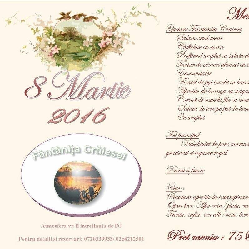 Legat de meniu ..tot respectul pentru implicare si chiar pt efortul de a merge pana la locatie pt a negocia!hi Insa  aperitivul este dezolant , si  ar trebuii discutat acest aspect- din meniul lor recomandat de 75 lei s-au scos doar chestiile comestibile si au redus doar 20lei ...eu unul as platii meniul intreg ( cel recomandat de locatie pt 8 martie ..vezi attach) care este cat de cat ok.