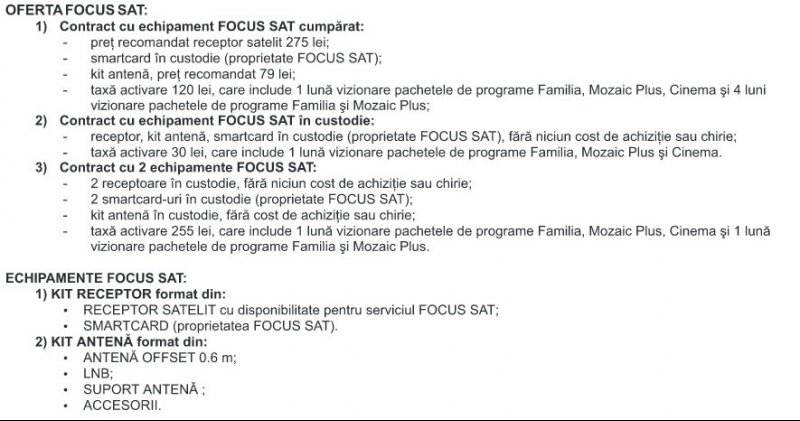 Pentru cine este interesat de oferta Focus Sat mai jos. Pentru obtiunea 2 trebuie sa aveti cartela activa minim 24 luni (gen abonament).
