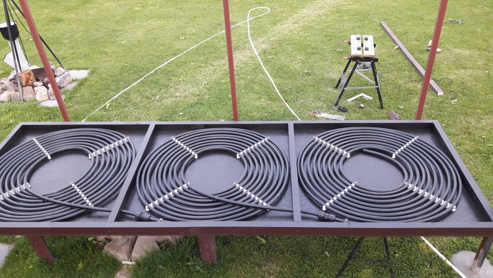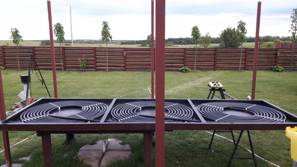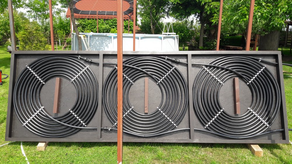 Cei doar vreo 70 metri s-au dovedit a fi insuficienți, temperatura apei a crescut doar cu 2-3 grade, așa că anul ăsta am facut un upgrade și am confecționat un panou de încalzire pe același principiu.