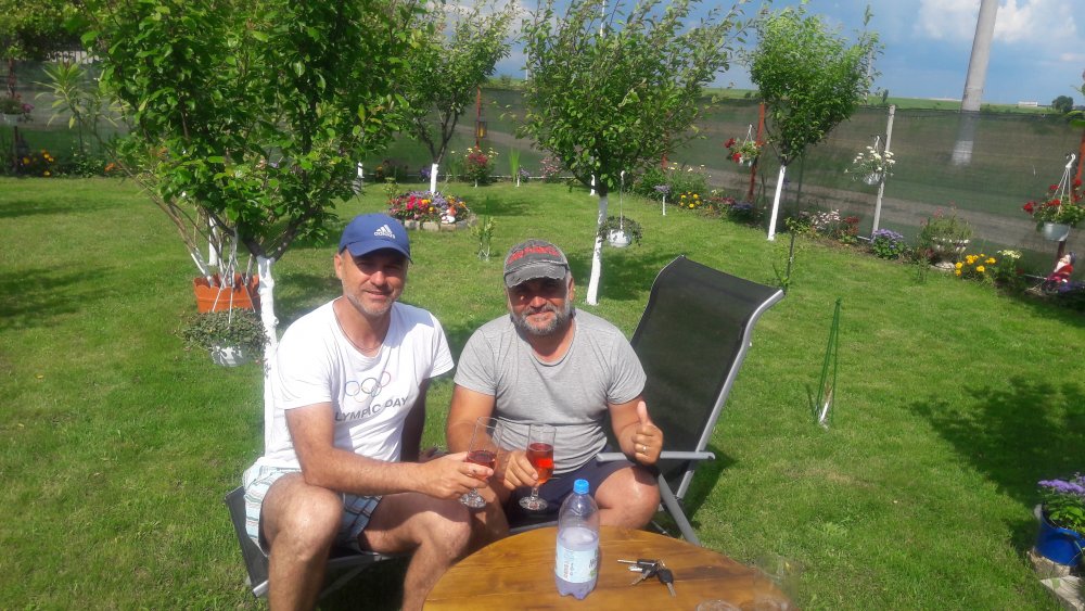 Dupa ce m-am instalat, am aflat de la el, ca stia si 2 cuvinte romanesti tuica si vin. El m-a servit cu o tuica de-a lor iar eu l-am servit cu un vin de Murfatlar.... si am vorbi cu el de am facut febra musculara.