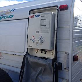 Va sugerez solutia pe care am adoptat-o eu. Instant pe gaz.. Il puteti folosi fara nici o modificare a instalatiei de apa, daca rulota dumneavoastra are rezervor de apa si pompa de apa cu o presiune mai mare de 1, 2 Atm. Pur si simplu taiati furtunul de apa si montati un Teu. Intrarea din mijloc o legati la instant. ( valabil pentru ambele furtune, apa calda/rece).