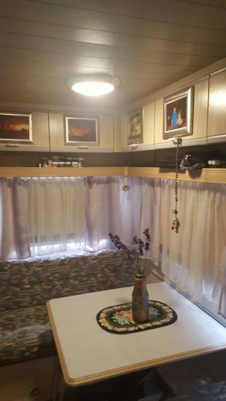 Nu prea se-ntelege mare lucru de cat si cum este interiorul rulotei, de asemenea poza cu panoul, bateria si cate inca altele, dar si partea dreapta cu si fara cort!