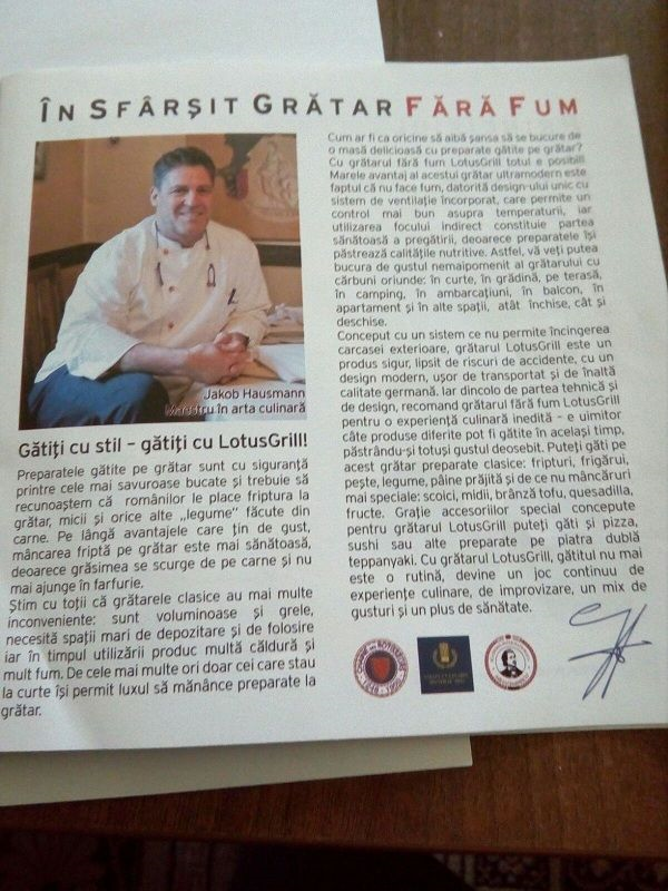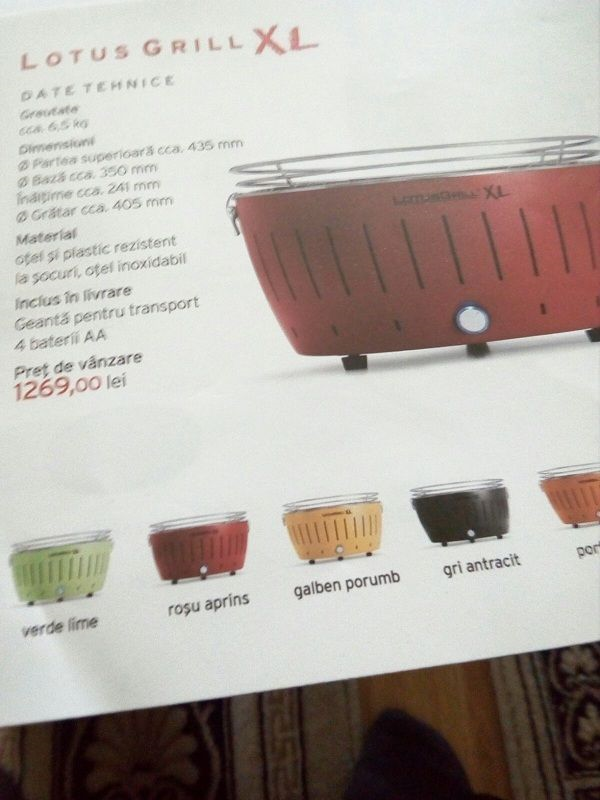 Pentru lamuriri suplimentare, atasez cateva poze dupa pliantul care insoteste produsul  LOTUS GRILL  (made in Germania) si dupa grillul achizitionat de mine.