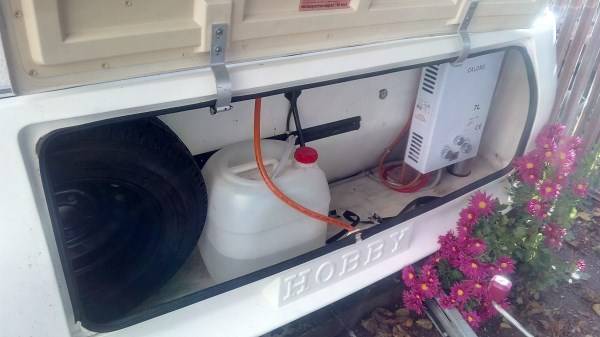 sistem de apa sub presiune din reteaua exterioara. Nu mai stiu de unde am aflat de el, insa acum ma pot conecta permanent in camping, fara grija nivelului de apa din rezervor