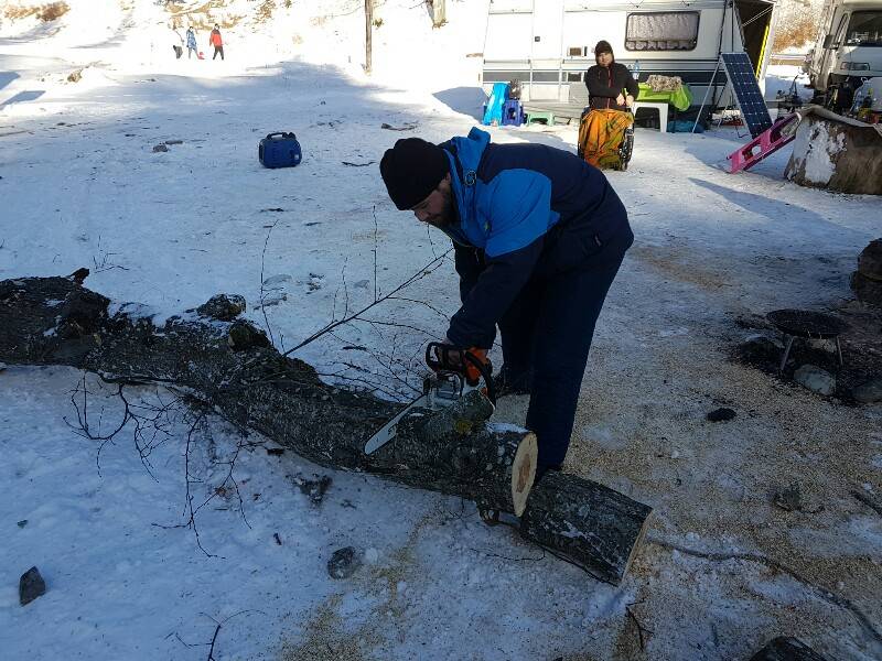 La un moment dat aud iar zgomot. Ma uit pe geam si vad doua picioare pe sub rulota lui @Bogdan S, dar nu stiam daca sunt de urs sau e Bogdan afara.Am deschis usa si am strigat, Bogdan, Bogdan??? Nimic. Na, nu ma aude, sau nu vrea....!