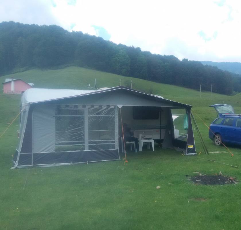 Cortul a fost absolut nou in tipla, cumparat in primavara anului 2016 dupa ce am achizitionat rulota (nu avea cort).