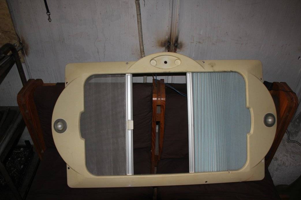 Trapa este un produs second hand, este modelul cu deschidere cu manivela, nu este completa, lipsand sistemul de prindere din interiorul rulotei.