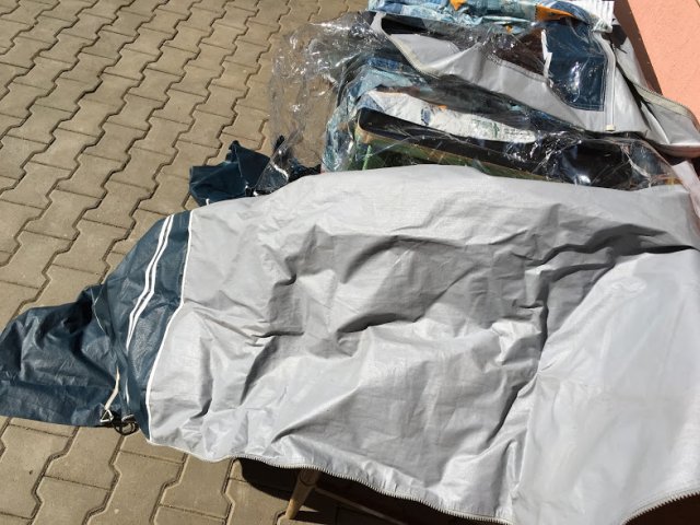 Cortul oferit spre vanzare este model inchis, marca Gottschalk, pentru rulote care au lungimea pe sina cuprinsa intre 680 cm si 700 cm.