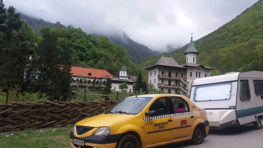 Cu greu dar am gasit la Calimanesti o locatie off camping pe langa Manastirea Turnu pe malul Oltului