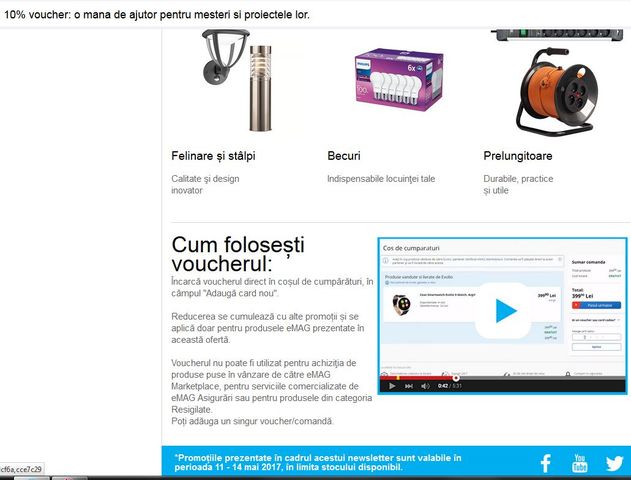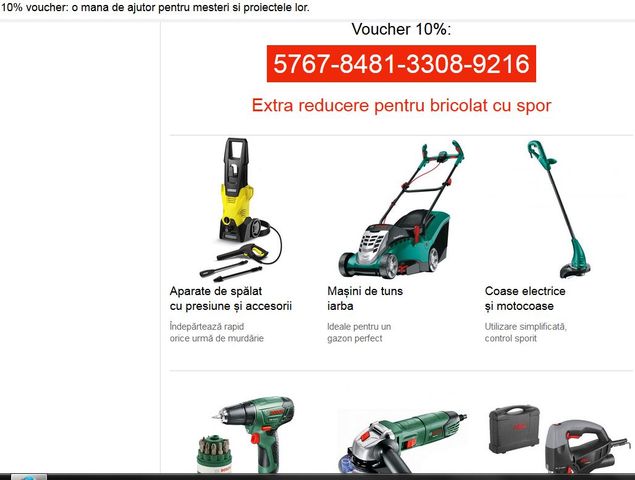 Reducere emag 10% intre 11-14 mai la scule electrice, gradinarit, corpuri de iluminat. Poate intereseaza pe cineva..