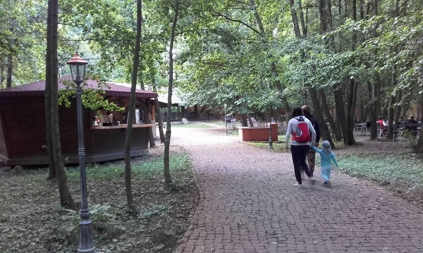 Intre locul de balaceala si poienita pentru rulote este o padure cu un rau, Terasa in padure unde se servesta masa.