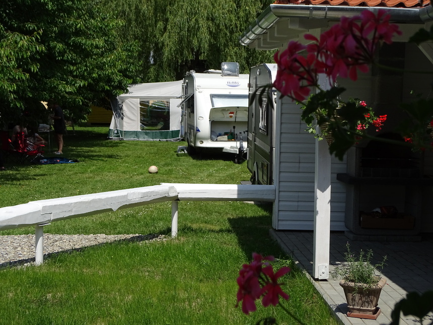 Exista un loc de joaca cu trambuline, exista posibilitatea închirierii de biciclete, exista posibilitatea închirierii de căsuțe cât si rulote staționare ce aparțin campingului. La zona de corturi exista vetre amenajate din loc in loc unde am făcut si noi focul de cateva ori si ne-am bucurat de aerul curat si trosnitul vreascurilor. Am prins câteva zile mai friguroase si am preferat sa cinam in interiorul rulotei.