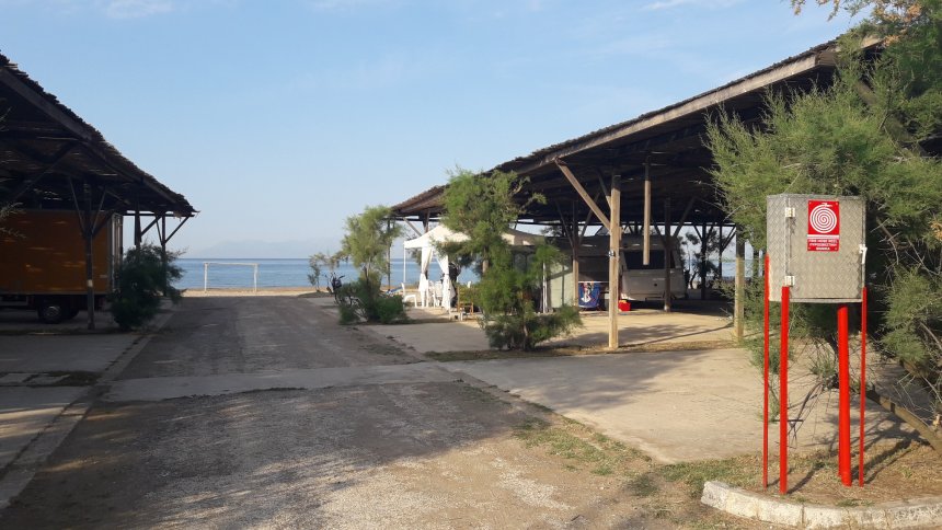 Urmatoarea destinatie: Gold Beach camping. Locatia este foarte buna, situata la doi pasi de o plaja intinsa cu nisip, fara sa fie amenajata cu exceptia unei zone mici de sezlonguri ce apartin tot de camping, unde am observat ca vin si foarte multi localnici ai zonei. Pe timpul noptii erau grupuri de greci la un gratar, sau poate doar cu un generator si depanau povesti, etc. Campingul este un mix ciudat intre rulote amplasate permanent, casute, zona de corturi si zona de rulote, dar cumva functioneaza interesant impreuna. Restaurantul lor este de vis iar personalul foarte amabil si dornic sa ajute. Video Camping