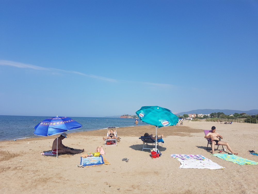 Se spune că pe timpul verii plajele grecești devin o extensie a litoralului românesc, lucru dovedit când soția se întâlnește cu o prietenă cu care nu se mai văzuse de multă vreme. Șansele pentru o asemenea întâlnire erau mai mici decât să se intersecteze pe stradă în București. Totodată am rămas surprins să văd o familie cu doi copii din România campată off, în pădurea de pini, pe un teren în pantă și cu multă umbră. Spun în ideea că nu existau facilități pt dușuri sau loc unde se putea deversa caseta chimică și nici curent electric.