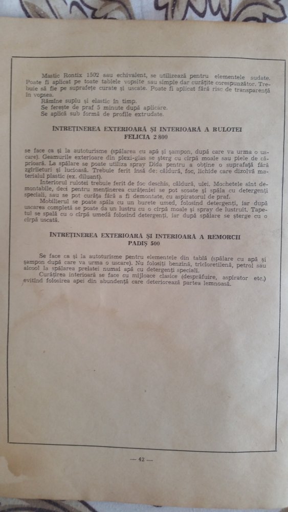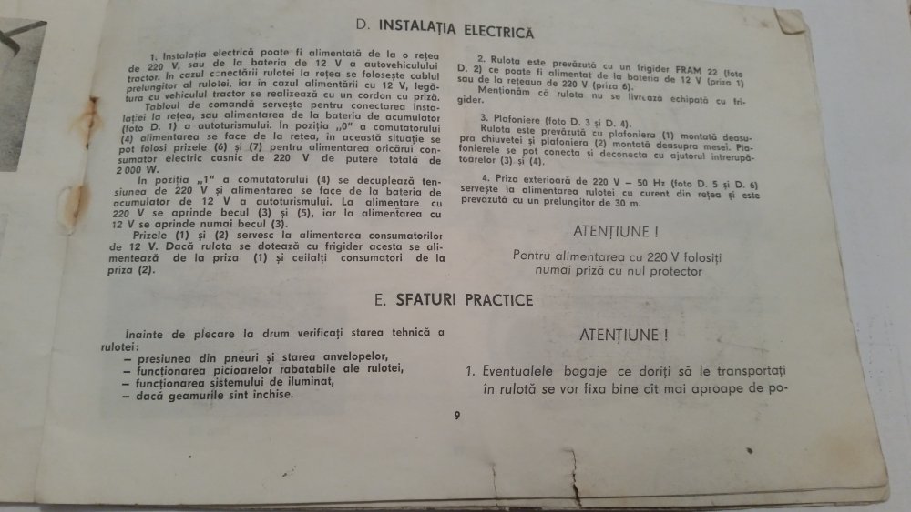 Alex R 21 Semnalează Publicat 28 Iunie, 2017 Salutare! Odata cu rulota, am avut norocul sa primesc si manualele originale. Poate ca sunt printre noi colegi care stiu de existanta rulotelor romanesti Felicia si Litoral. Cu siguranta insa au mai ramas foarte putine rulote din acest model, cat despre documentatie nu mai incape vorba. Iata deci unul din manualele originale ale rulotei romanesti Felicia 2800: 10 Distribuie această postare Link către postare Distribuie pe alte siteuri