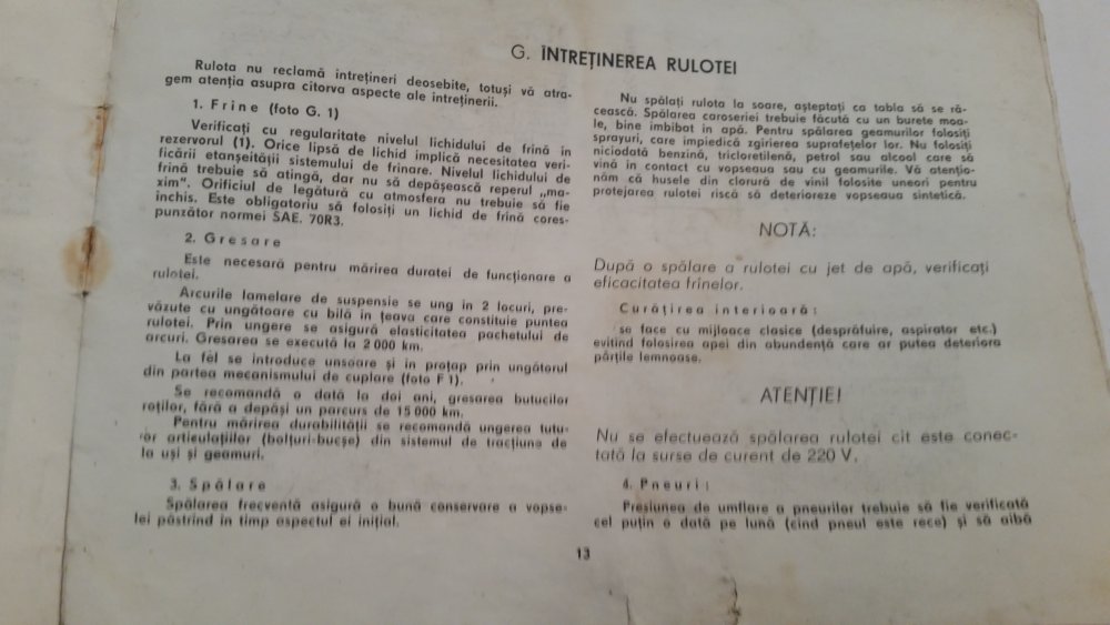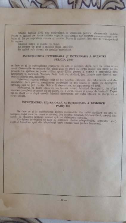 Alex R 21 Semnalează Publicat 6 August, 2017 Iata si cel de al doilea manual pentru Rulota romaneasca Felicia 2800. Sper sa va fie de folos, poate mai apar persoane dornice sa restaureze asa ceva: 1 5 Distribuie această postare Link către postare Distribuie pe alte siteuri