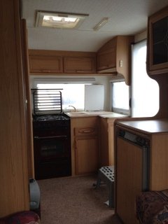 aragaz, frigider, chiuveta, toate pe drapta cum intri in rulota. Am pe cineva care mi-a subliniat ca este important sa nu am frigiderul cu ventilatia in cort...