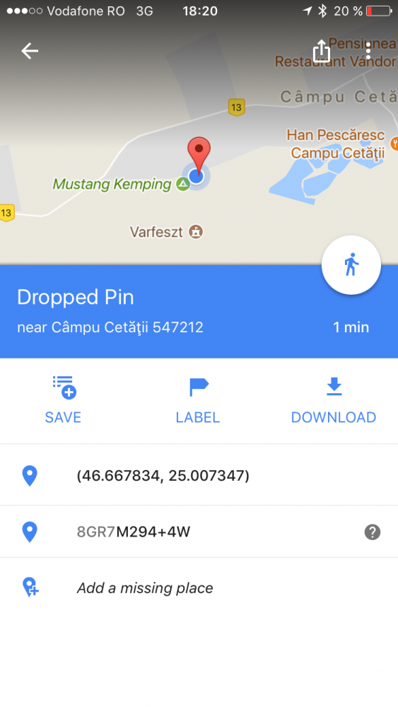 Aveti mai jos o poza cu locatia exacta + coordonate GPS (si Google maps stie de Camping Mustang)