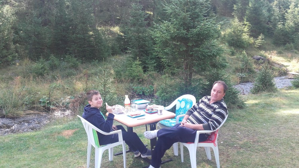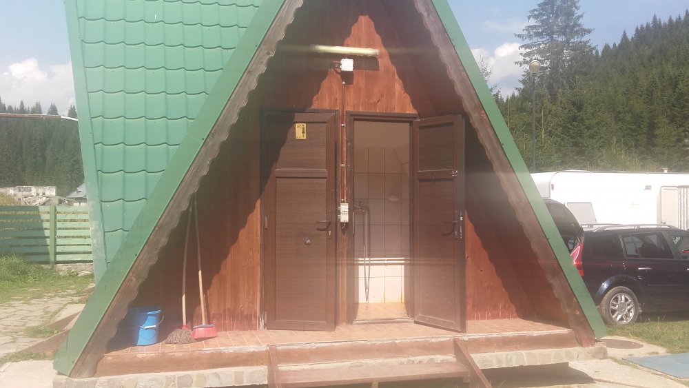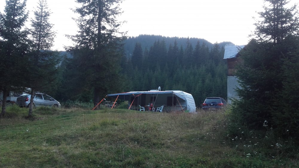 La sosirea in Camping am fost intampinat de administratorul campimgului, dl. Cristi, un om foarte de treaba. I-am explicat ca nu doresc camparea in camping dar ca doresc sa ma racordez la 220V. M-a indrumat in poiana din spatele campigului care ar apartine tot de camping. Am achita 25 lei/zi camparea cu acces la toate facilitatile + 15 lei/zi pentru curent de care, sincer, am profitat din plin tinand noaptea AC-ul pe incalzire :tipp: