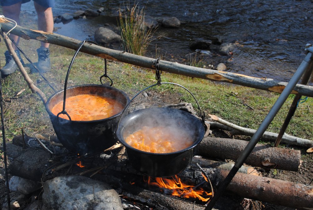 Intr-unul ciorba de peste, iar in celalat gulas, facute de Betty , iar in ceaunul nr 3, mamaliga.