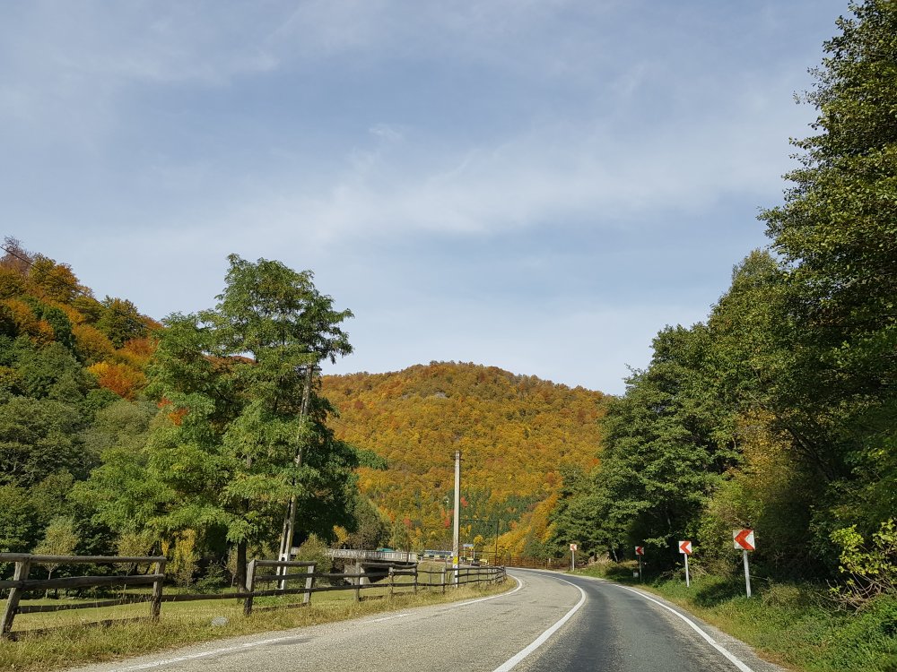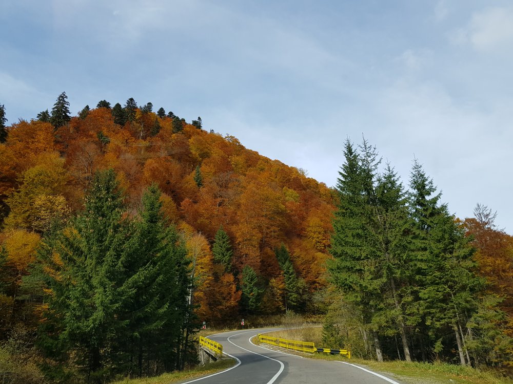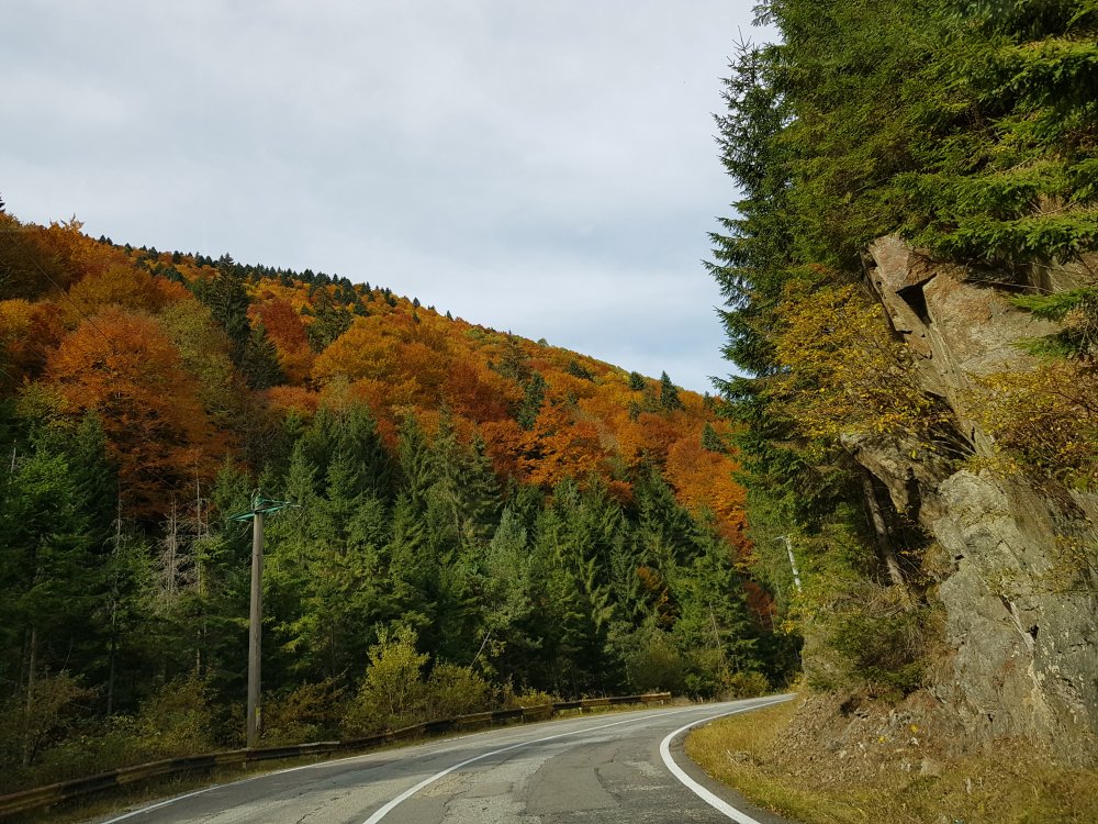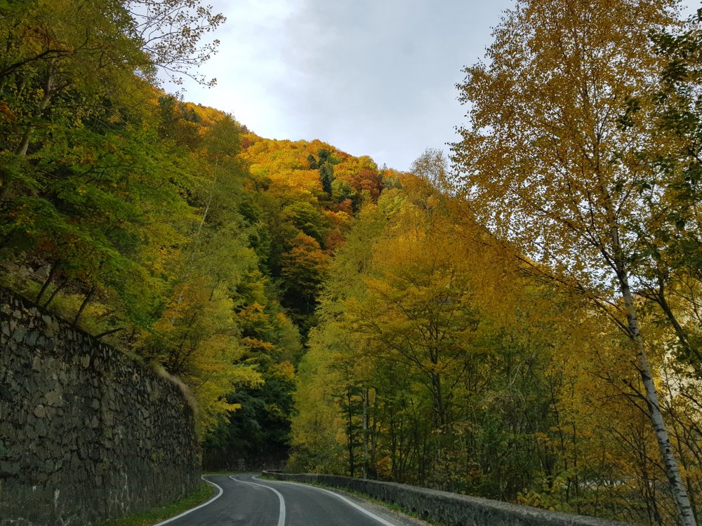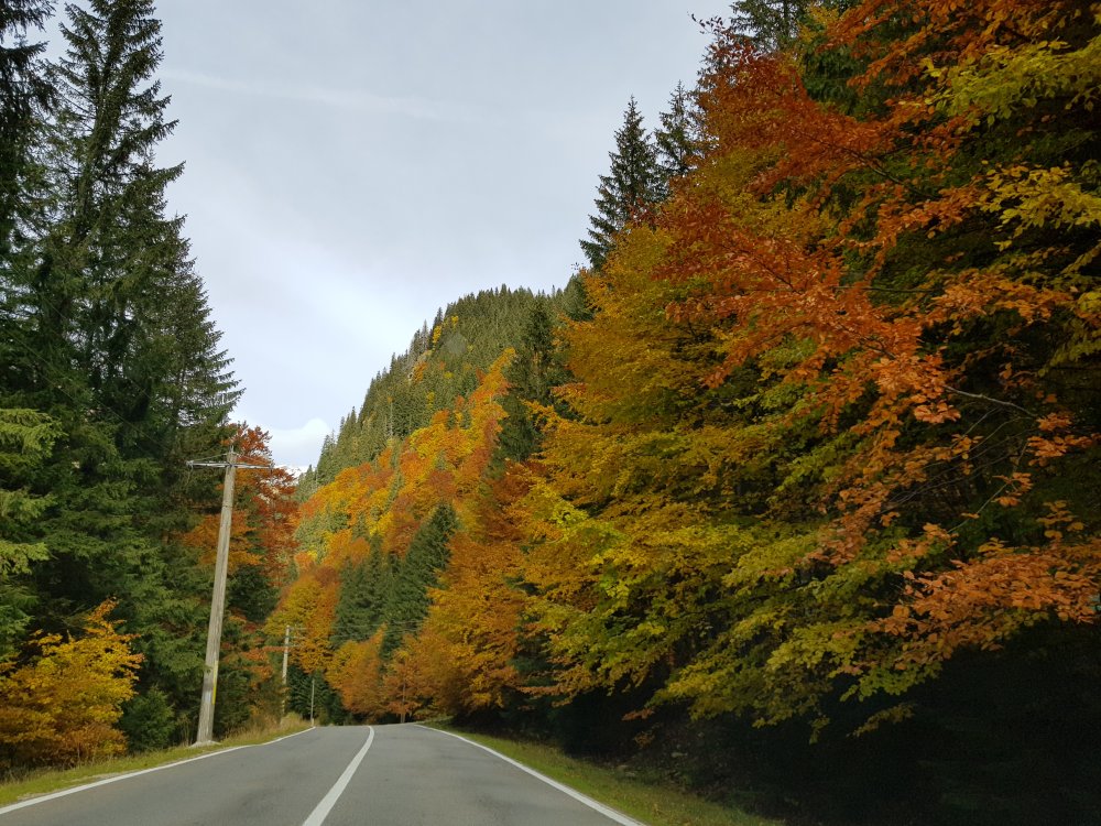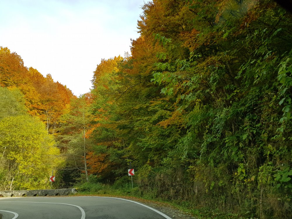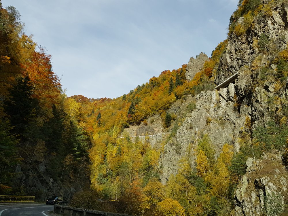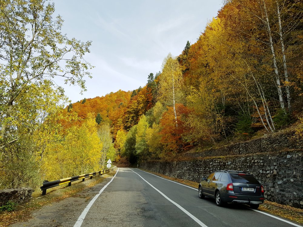 Nu mi-am mai pus intrebarea: unde sa pleci, pentru o zi din Bucuresti! Am cotit pe Iuliu Maniu la 9:45 , inaintat pe A1, Pitesti, Curtea de Arges, am facut un popas sa luam binecuvantare de la Sfanta Filofteia ca nu mai trecusem demult si am continuat drumul spre Transfagarasan. Mult iubitul meu traseu in a ma reculege! Acum nu era vorba de reculegere, ci de senzatiile tomnatice! Toamna! DA! Cand spui toamna, iti aduci aminte de tot, de copilarie, de tot ce a fost cel mai frumos, parinti, bunici, prieteni, de momentele acelea cand umblam prin frunzele ruginii, la culesul viei, merele pline de brumate...etc!