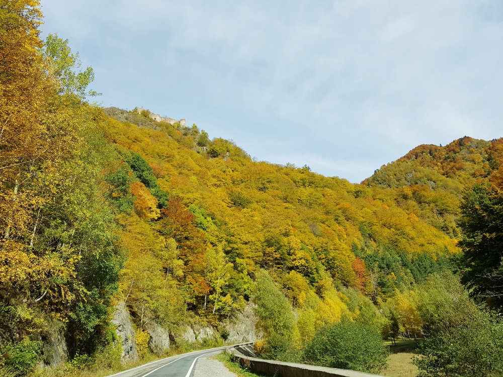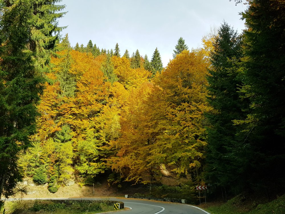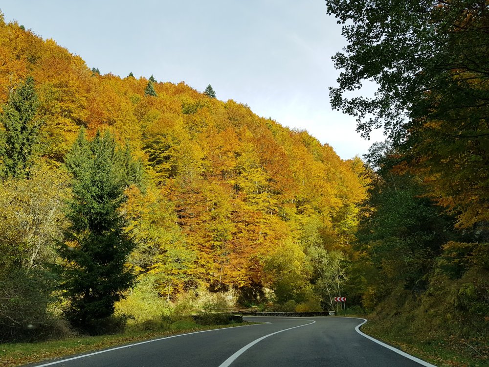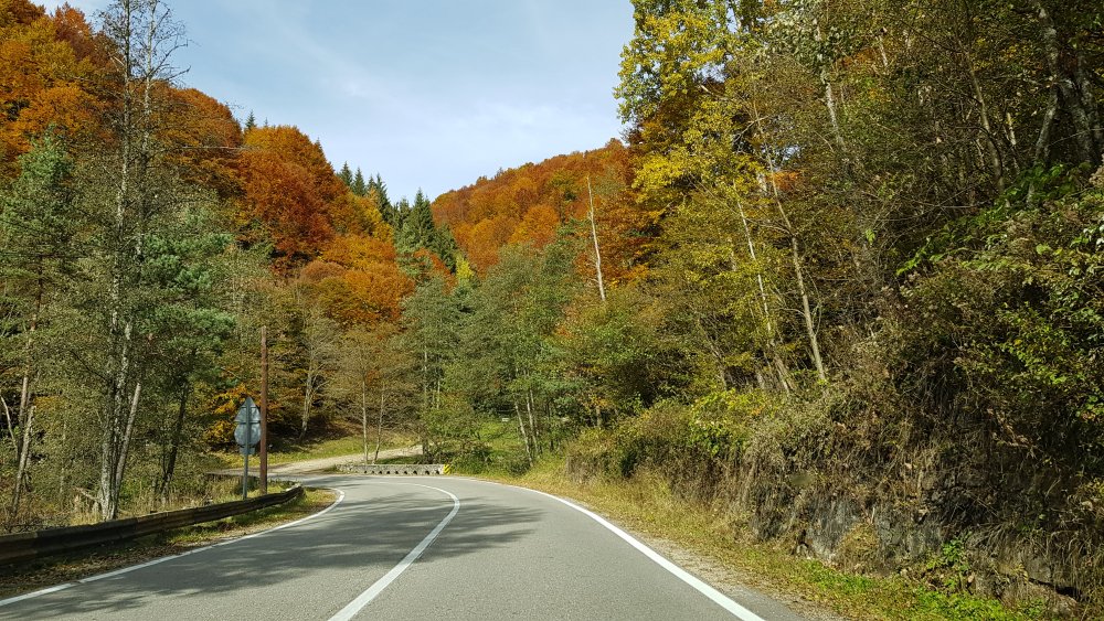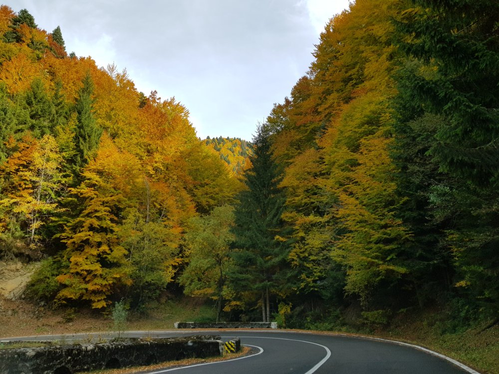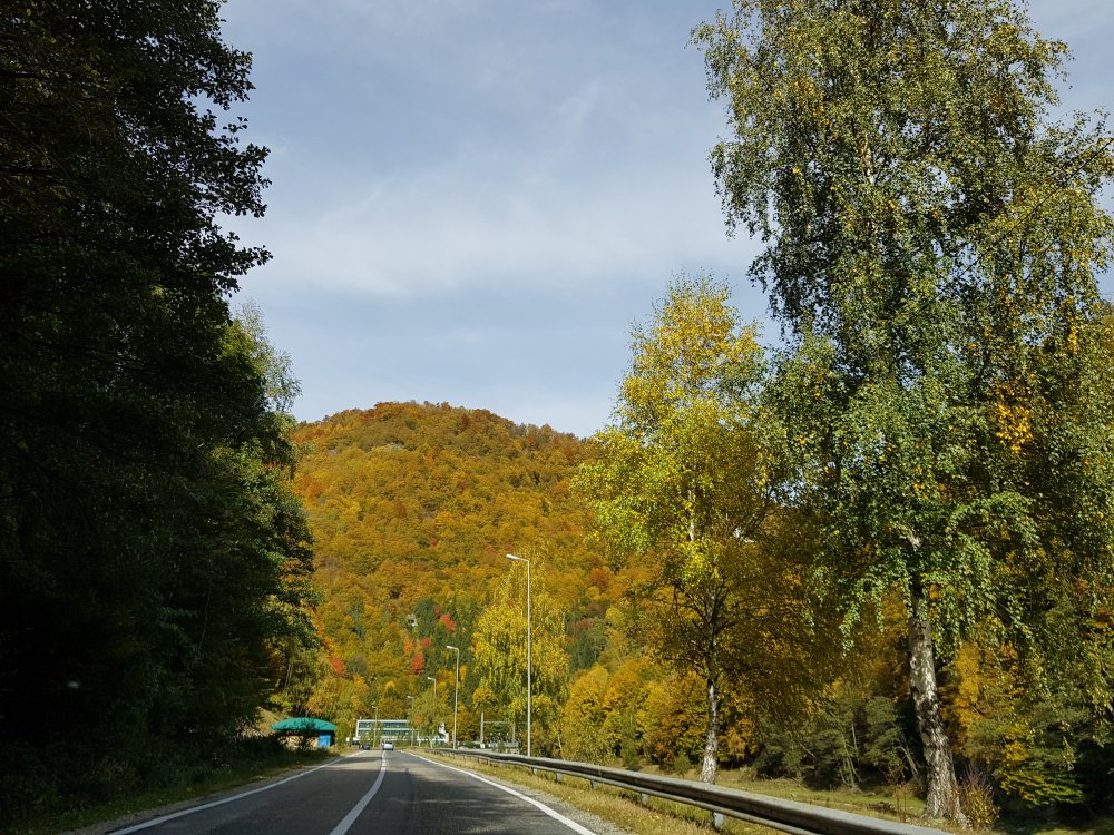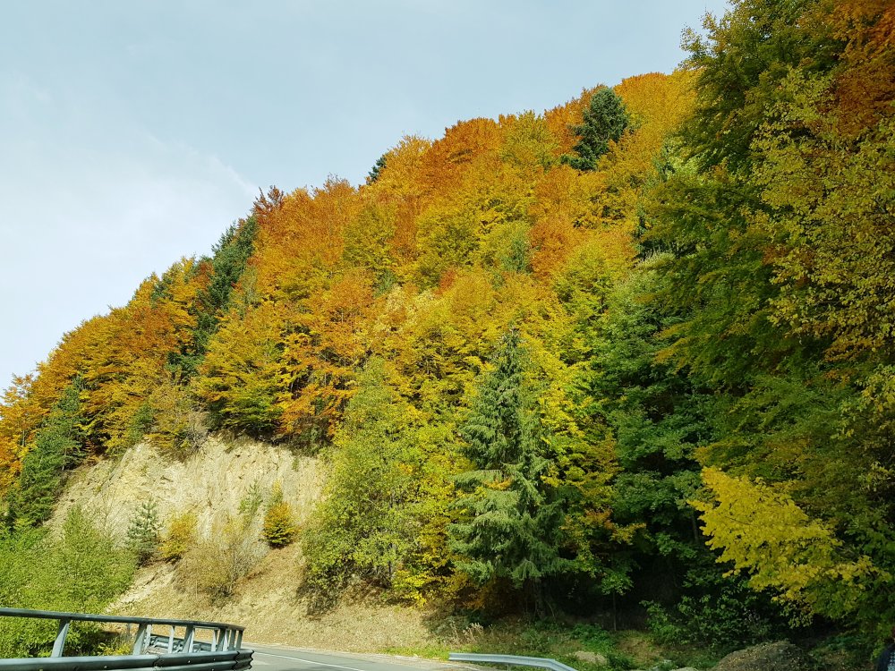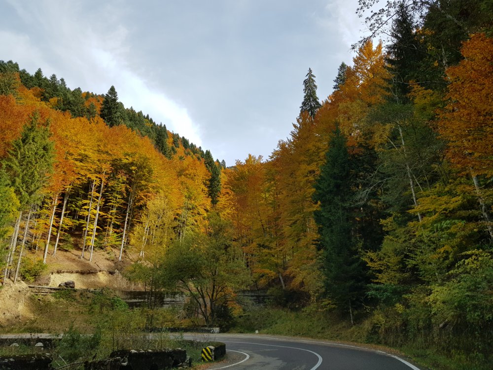 Nu mi-am mai pus intrebarea: unde sa pleci, pentru o zi din Bucuresti! Am cotit pe Iuliu Maniu la 9:45 , inaintat pe A1, Pitesti, Curtea de Arges, am facut un popas sa luam binecuvantare de la Sfanta Filofteia ca nu mai trecusem demult si am continuat drumul spre Transfagarasan. Mult iubitul meu traseu in a ma reculege! Acum nu era vorba de reculegere, ci de senzatiile tomnatice! Toamna! DA! Cand spui toamna, iti aduci aminte de tot, de copilarie, de tot ce a fost cel mai frumos, parinti, bunici, prieteni, de momentele acelea cand umblam prin frunzele ruginii, la culesul viei, merele pline de brumate...etc!