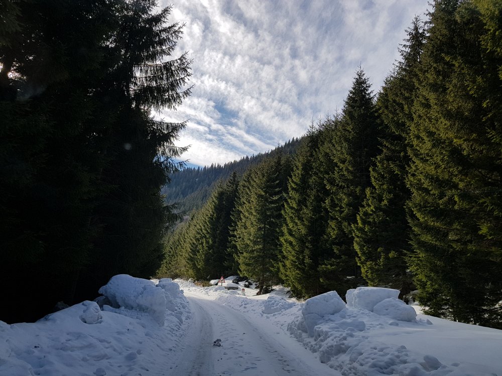 De la covoarele de frunze impletite in mii si mii de culori aici am pasit pe un covor de zapada! Ce contrast!