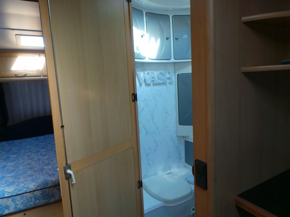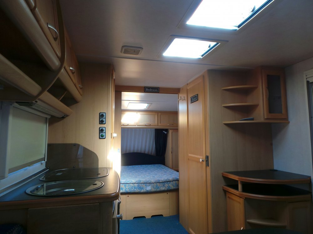 Iluminat 12v ambiental cu schimbarea culorilor Trapa mare funcțională, fără fisuri sau alte probleme Trapa în zona patului matrimonial Trapa în baie, cadita dus Geamurile sunt ca noi, plasele de insecte și parasolarele sunt prezente și funcționale.