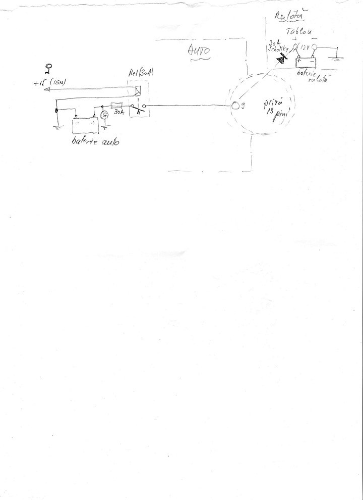 Mihnea Stoenescu 499 Semnalează Publicat 21 Ianuarie, 2018 O schema simpla (fara a avea pretentii exclusiviste) ar fi aceasta: Functii: 1 realizeaza incarcarea bateriei rulotei atata timp cat motorul functioneaza 2 dupa oprirea motorului, bateria masinii este deconectata de la instalatia rulotei 3 nu permite descarcarea bateriei rulotei spre masina, la pornirea motorului (supraincarcarea conductorului ce trece prin pinul 9 al prizei) = dioda *) Aceasta varianta nu furnizeaza optiunea alimentarii consumatorilor rulotei la alegere (din bateria acesteia sau bateria masinii), singura baterie care debiteaza in stationare fiind exclusiv cea din rulota. Este o propunere... 4 Distribuie această postare Link către postare Distribuie pe alte siteuri