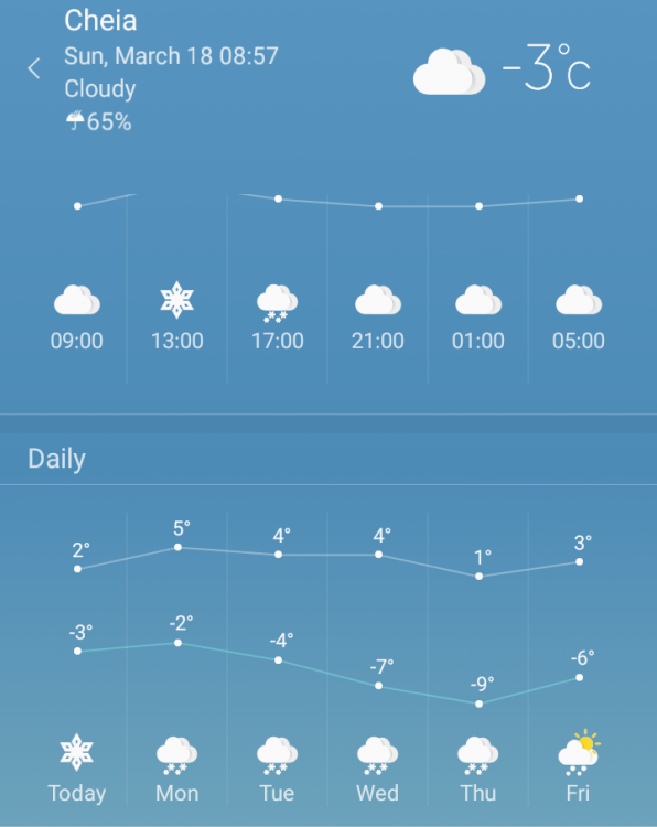 Saptamana aceasta,  vremea se anunta din ce in ce mai apropiata de iarna decat de primavara, cu ninsori in fiecare zi temperaturi negative atat ziua, cat si noaptea...:default_doh: