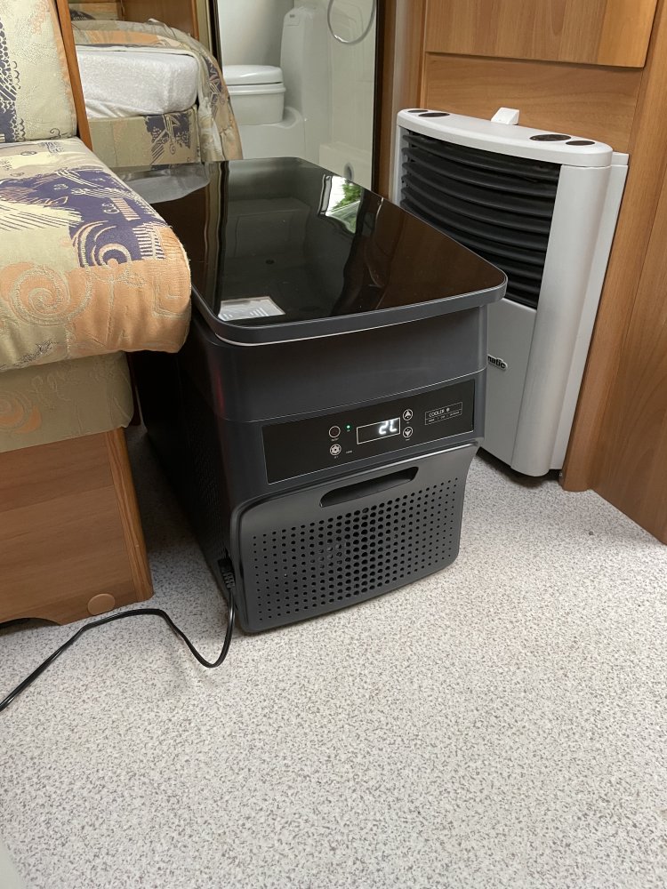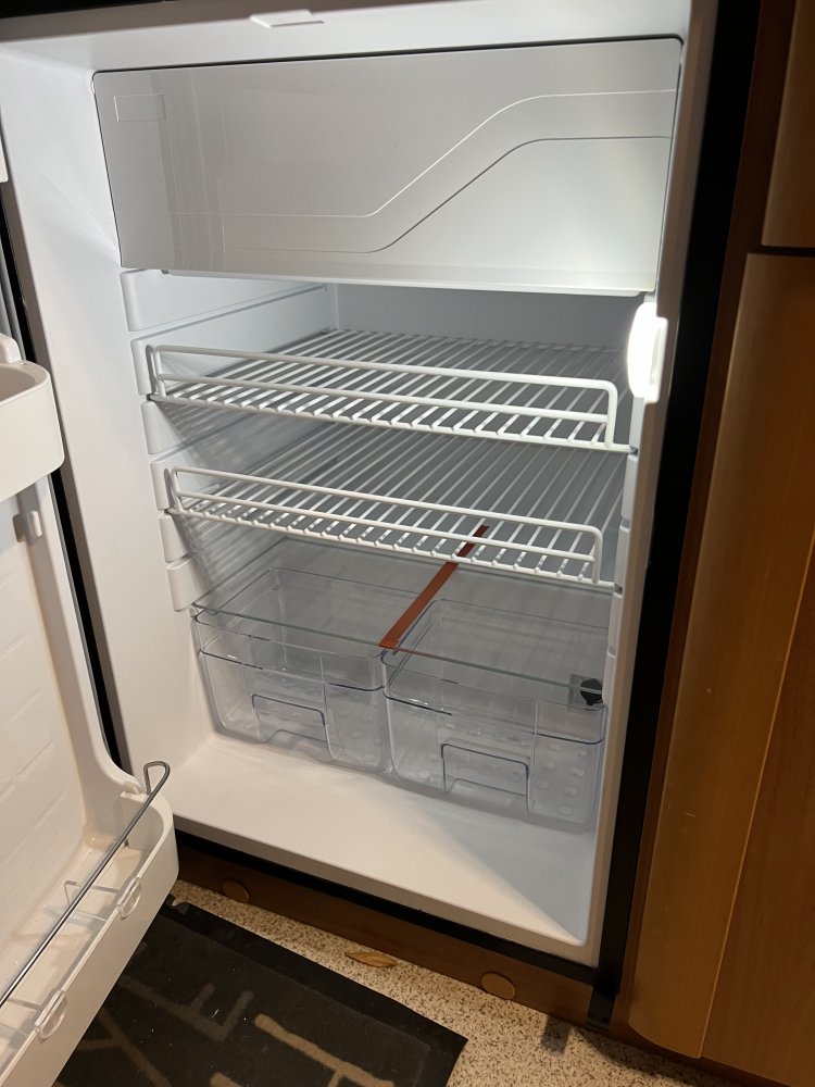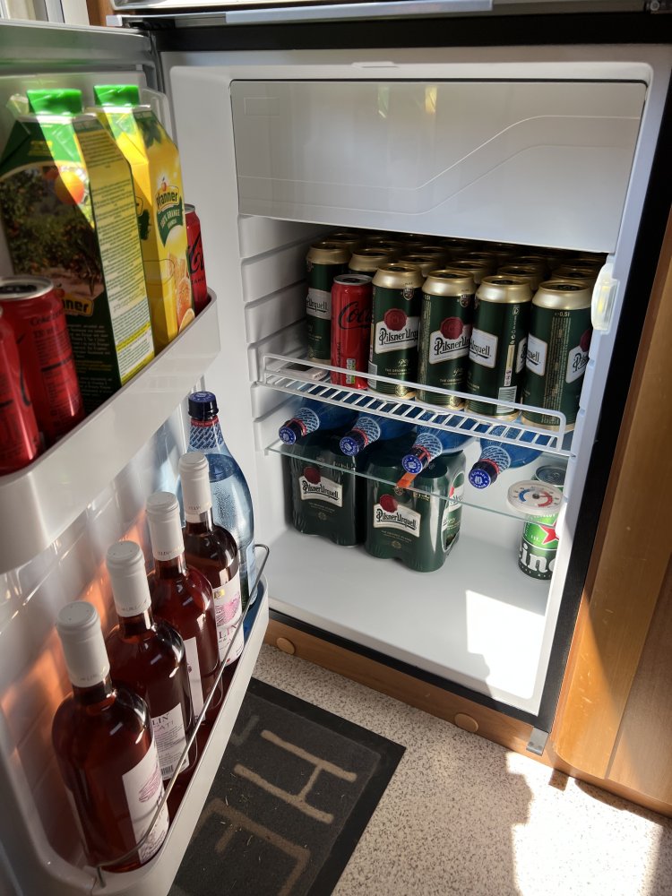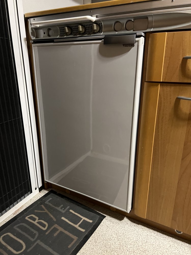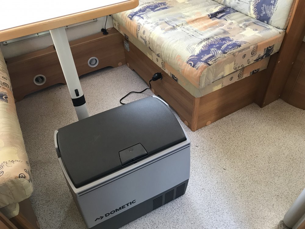 frigider nou cu compresor, dedicat rulotelor sau barcilor. M-am invartit mult sa gasesc un frigider de 220v si sa il trnsform la 12v, insa nu am reusit sa gasesc niciunul la dimensiunea celui vechi (74 cm inaltime). Toate din comert au 80 cm . 2 ani m-am tot codit din cauza pretului, greu de acceptat sa dau mai mult pe cel din rulota decat pe frigiderul din casa